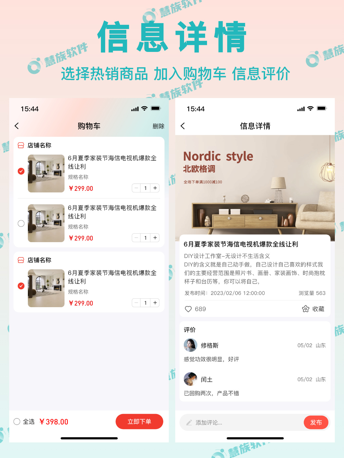 - 购物车功能:支持加入购物车、数量修改、商品删除等功能。